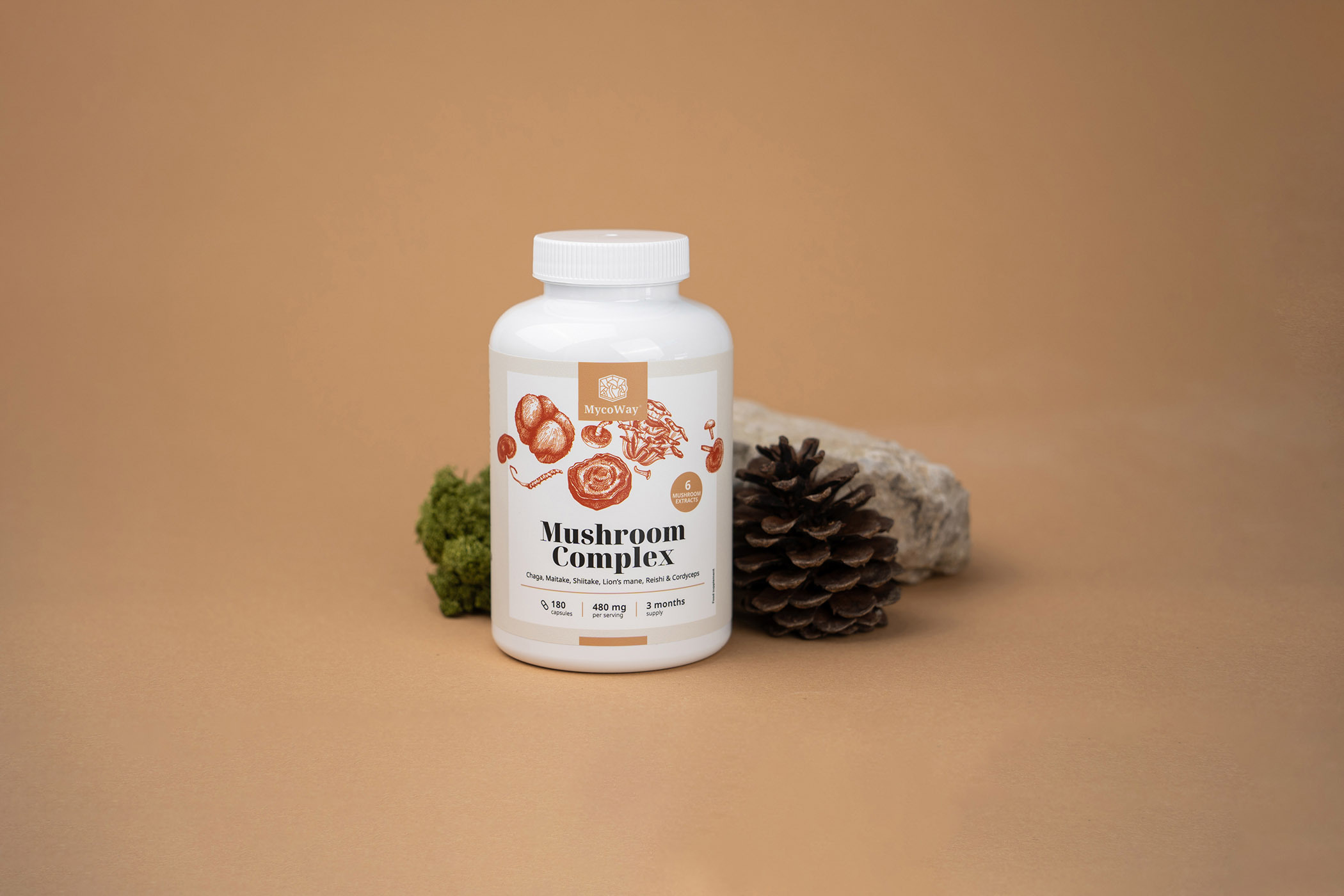 A gombakomplex hat olyan ázsiai gomba természetes kivonatát tartalmazza, amelyeknek évezredes hagyománya van a gyógynövénytanban: chaga, shiitake, reishi, maitake, cordyceps és chinchilla.