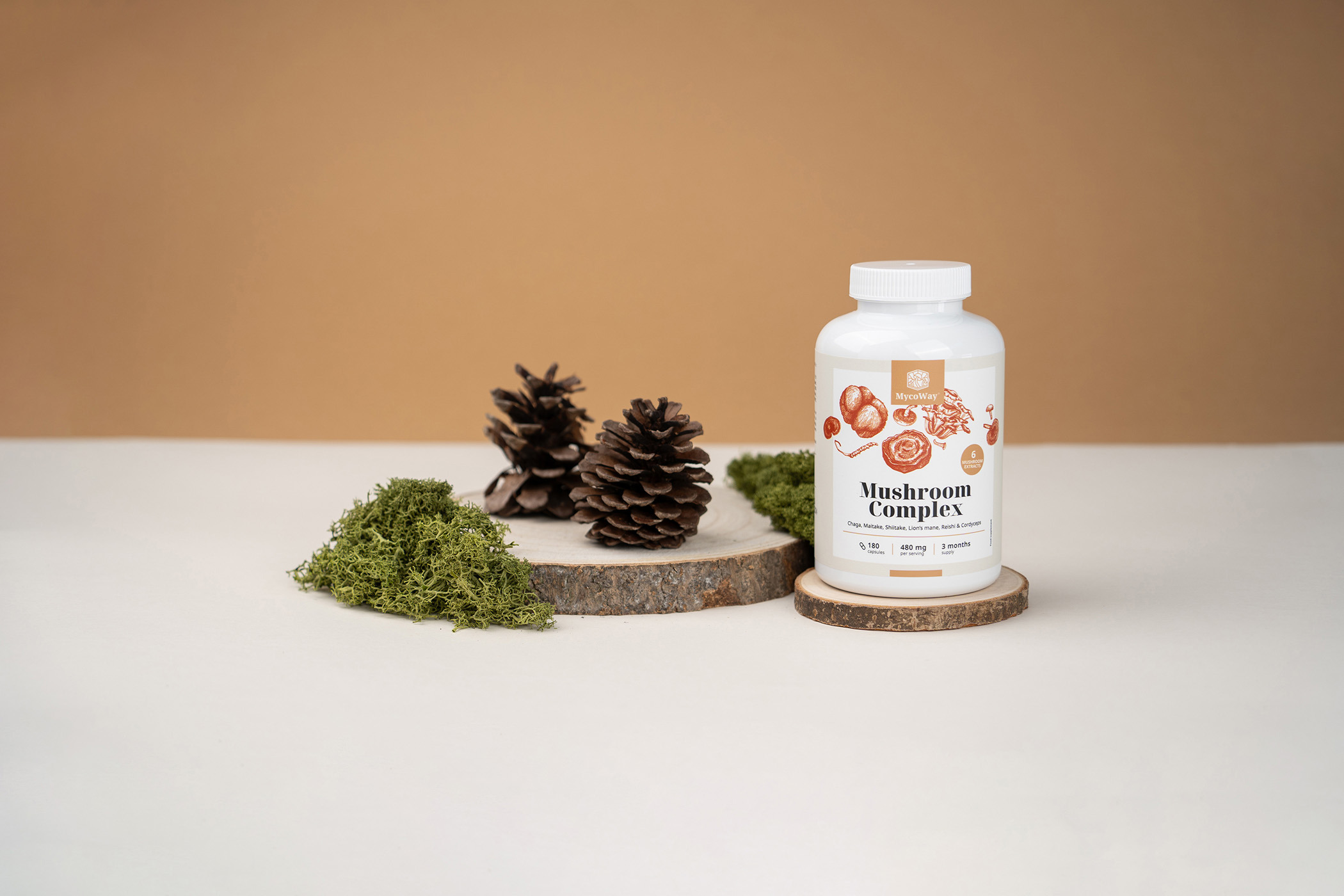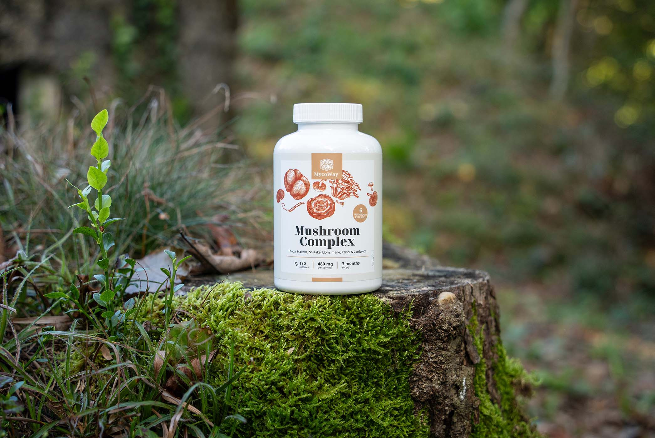 A gombakomplex hat olyan ázsiai gomba természetes kivonatát tartalmazza, amelyeknek évezredes hagyománya van a gyógynövénytanban: chaga, shiitake, reishi, maitake, cordyceps és chinchilla.